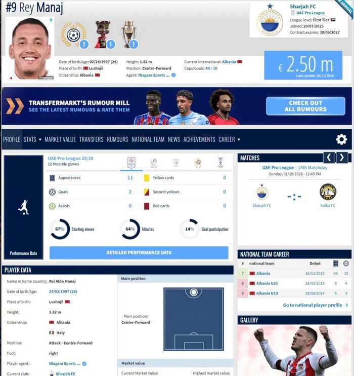 在夏季转会窗口加盟阿尔沙迦的马纳伊将离开俱乐部,前往中国继续他的职业生涯。